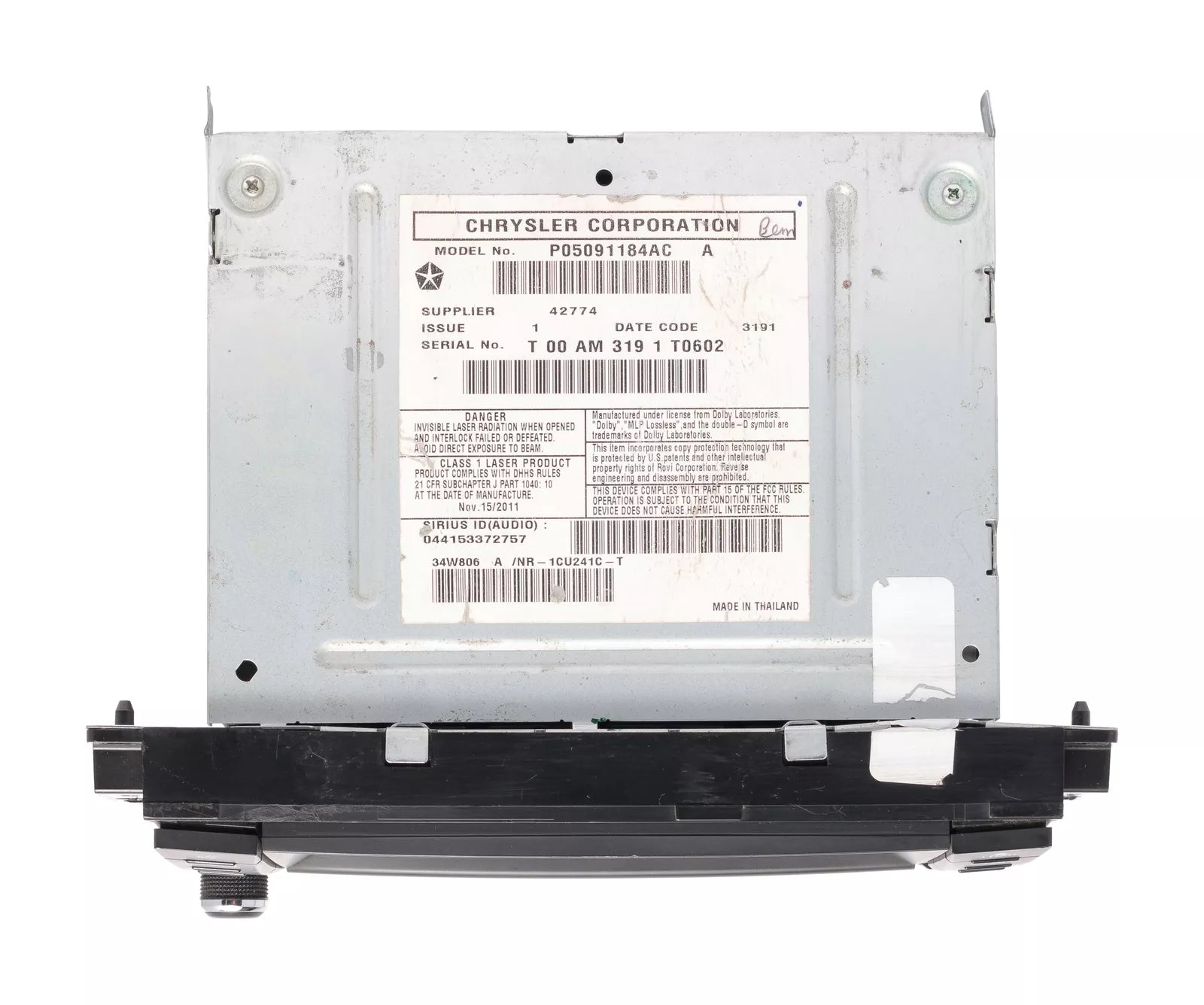 2011-12 Chrysler 200 AM FM Radio Aux XM CD Player 05091184AC OPT RHB