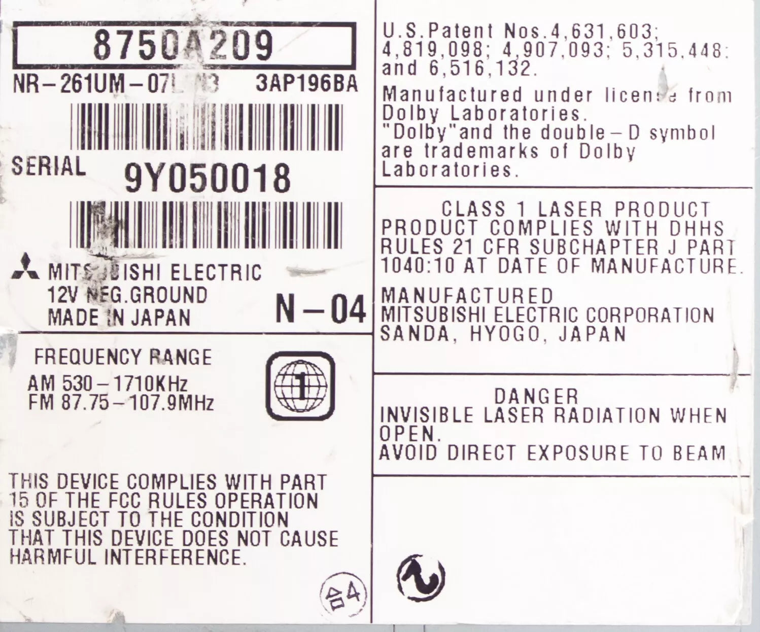 2011-2013 Mitsubishi Lancer Outlander AM FM Radio CD DVD MP3 Player Nav 8750A209