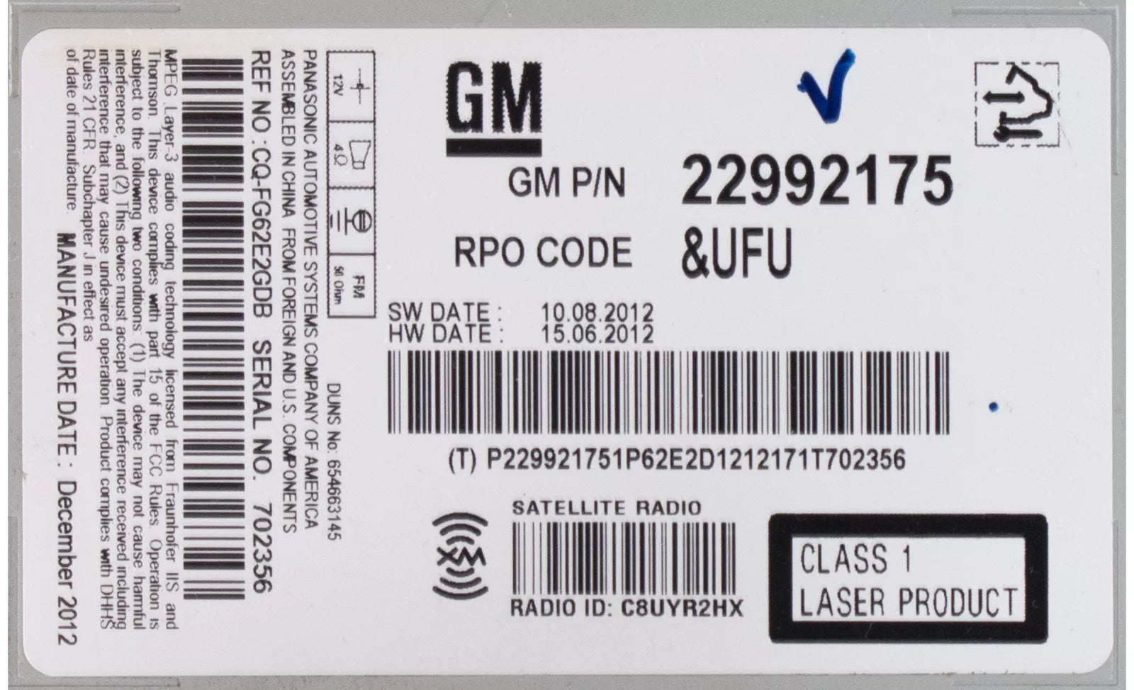 Part Number: 22992175