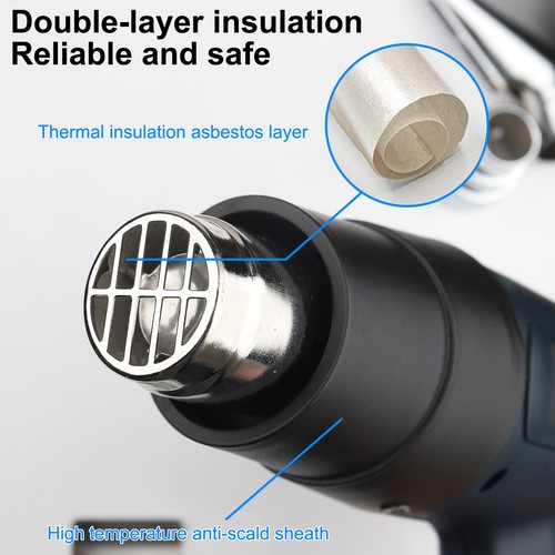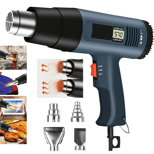 Digital display: LCD display and temperature control--2500W(peak power) hot air gun with LCD digital display real-time temperature display is easy to use, variable temperature control can meet different temperature requirements for different jobs